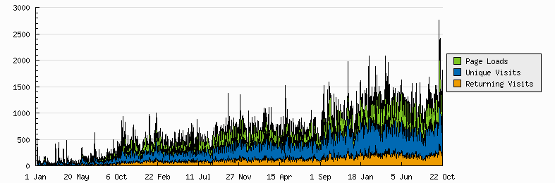 The following graph charts the growth of traffic on AWOL over its lifetime: