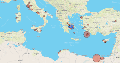 Distribution of the Berlin Painter. Now that we have significantly more data in the system (despite nearly all of it coming from a single source), geographic and distribution analysis visualizations begin to look a bit more accurate. This is not a full picture, but it is a pretty clear demonstration of the sorts of research tools that are possible on Linked Open Data methods applied to Greek pottery.