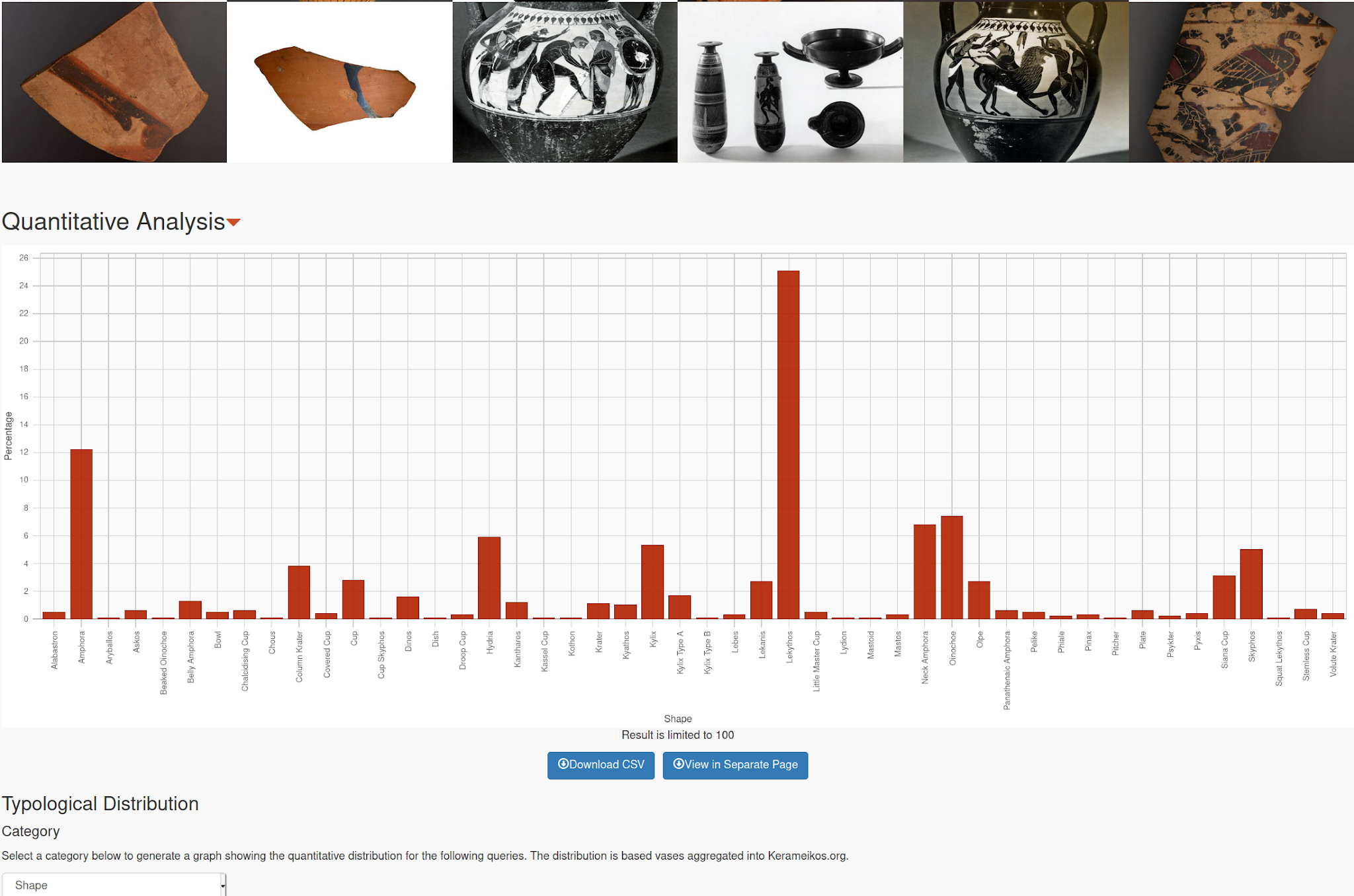 Black Figure distribution of shapes The results of these queries can be downloaded as CSV or opened in a new page for bookmarking and citation, or refined further to compare different sets of data. As you can see, there are far more Black- than Red-figure lekythoi.